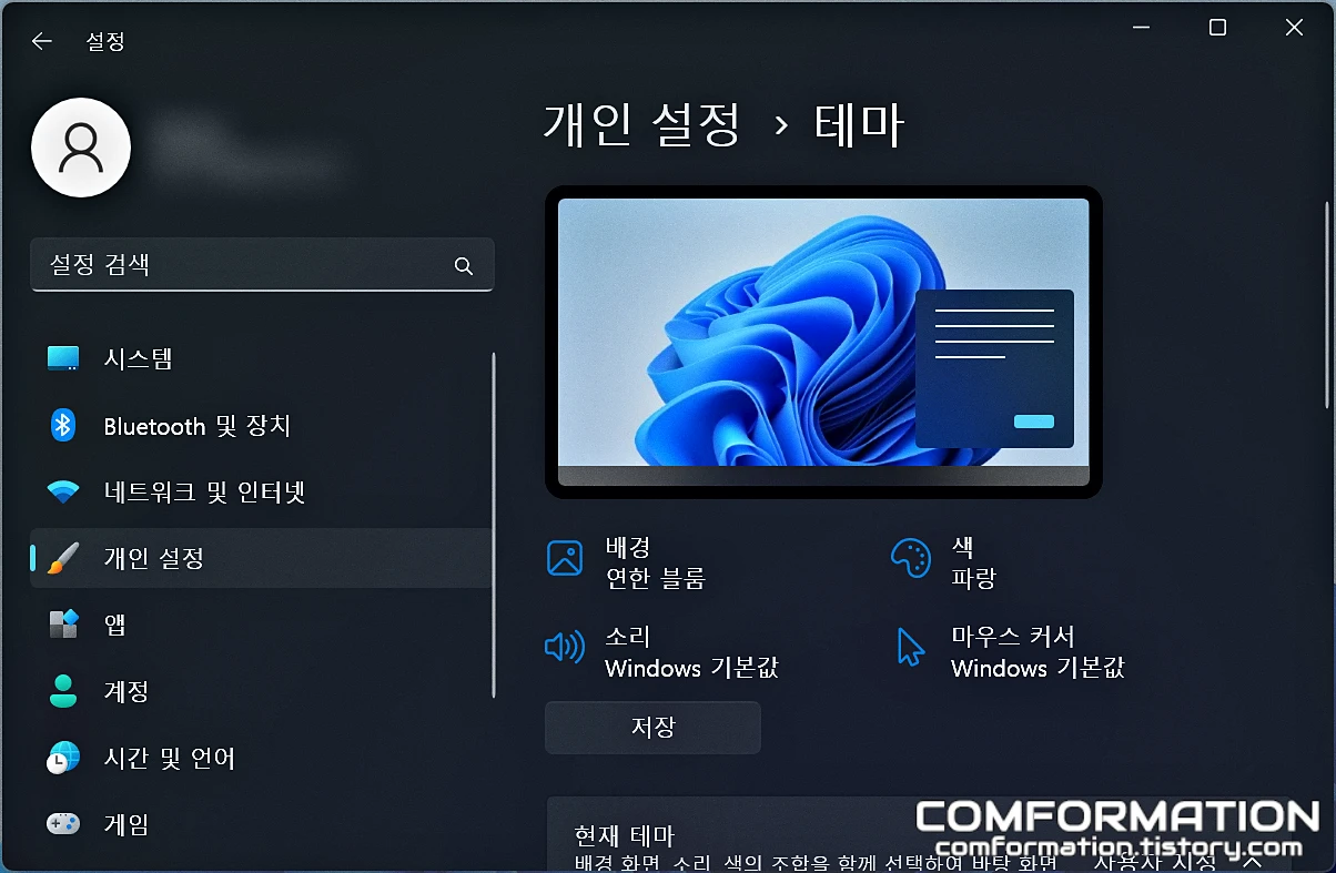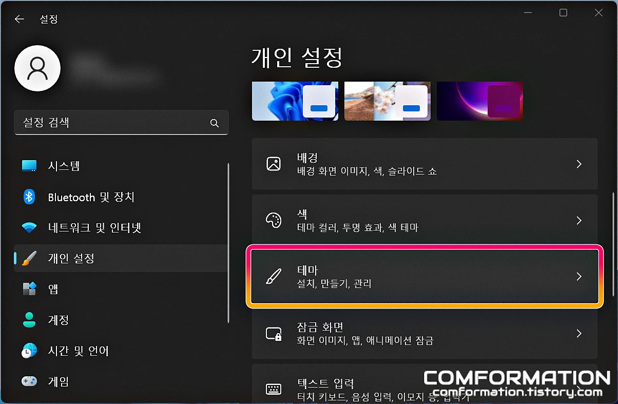 그럼 아예 테마 메뉴가 분리되어 있는 것을 확인할 수 있는데, 이 테마 메뉴로 들어가 주면,