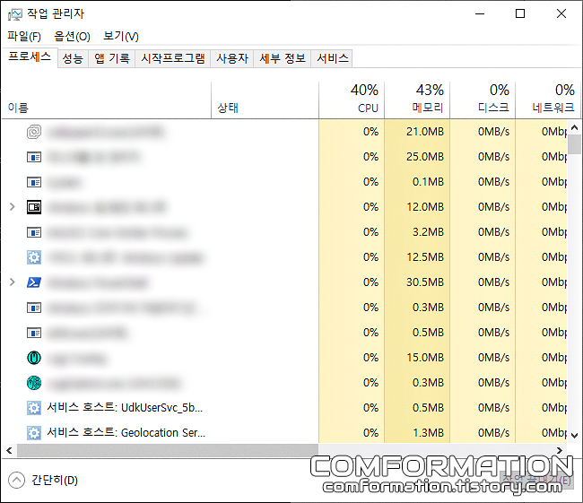 먼저, 키보드의 Ctrl + Shift + Esc 단축키를 이용해 작업 관리자를 실행해보자. 그럼 기본적으로 프로세스 탭에 맞춰져 있는데, 여기서 Windows 탐색기를 찾아보자.